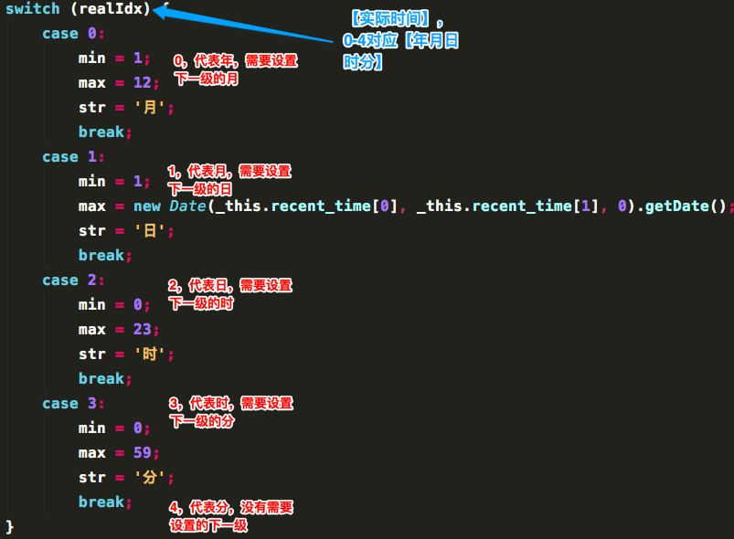 ③ 判断好下一级的数据范围后,需要判断是否滑动到了开始时间(即最顶),或结束时间(即最底):