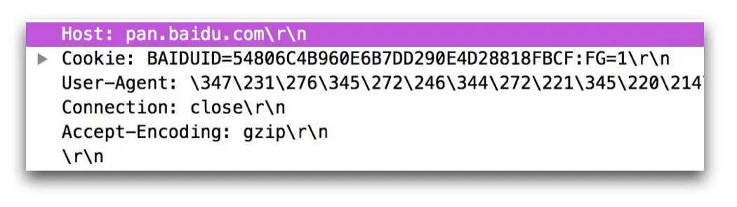 上面讲述Request-URI的时候,缺失的Host就以键值对的形式存在于header中,比如,Host: pan.baidu.com。