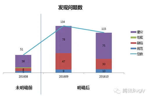 以下是一个团队建立起检视指南前后,CodeReview发现问题数的变化,足见建立检视指南的重要性。