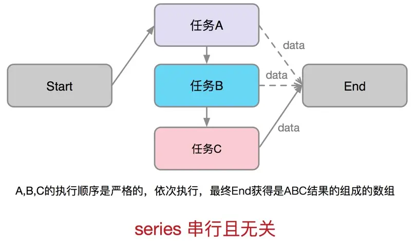 series更像同一时间只可以执行一个任务的parallel,所以语法上和parallel相同。