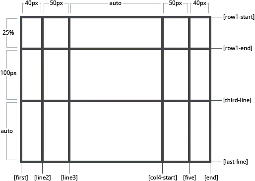 grid-template-rows: [row1-start] 25% [row1-end] 100px [third-line] auto [last-line];