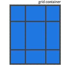 元素应用display:grid,它是其所有网格项的父元素。下面例子container就是网格容器。