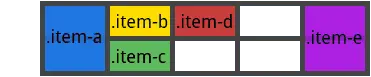由于我们设置了grid-auto-flow:row,item-b、item-c和item-d在行上是从左到右排列,如下: