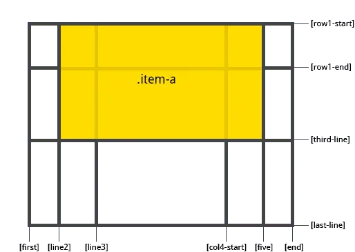 每条网格线可以有多个名字,例如上面行的第二条线有两个名字,分别是row1-end和row2-start。