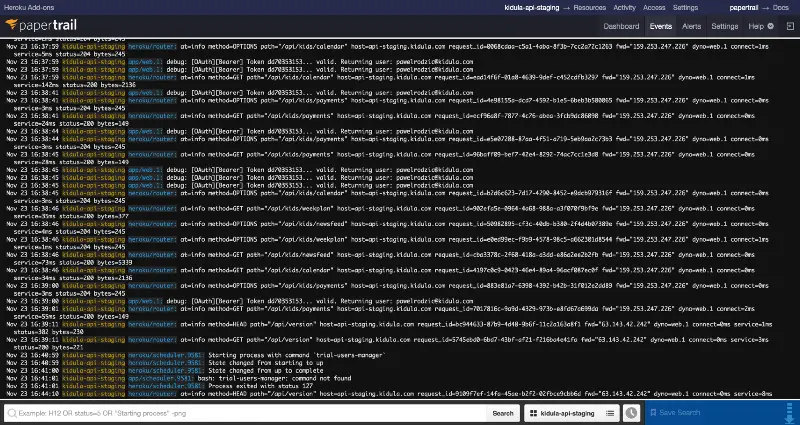 在日志管理方面,我推荐Papertrail,它提供了: