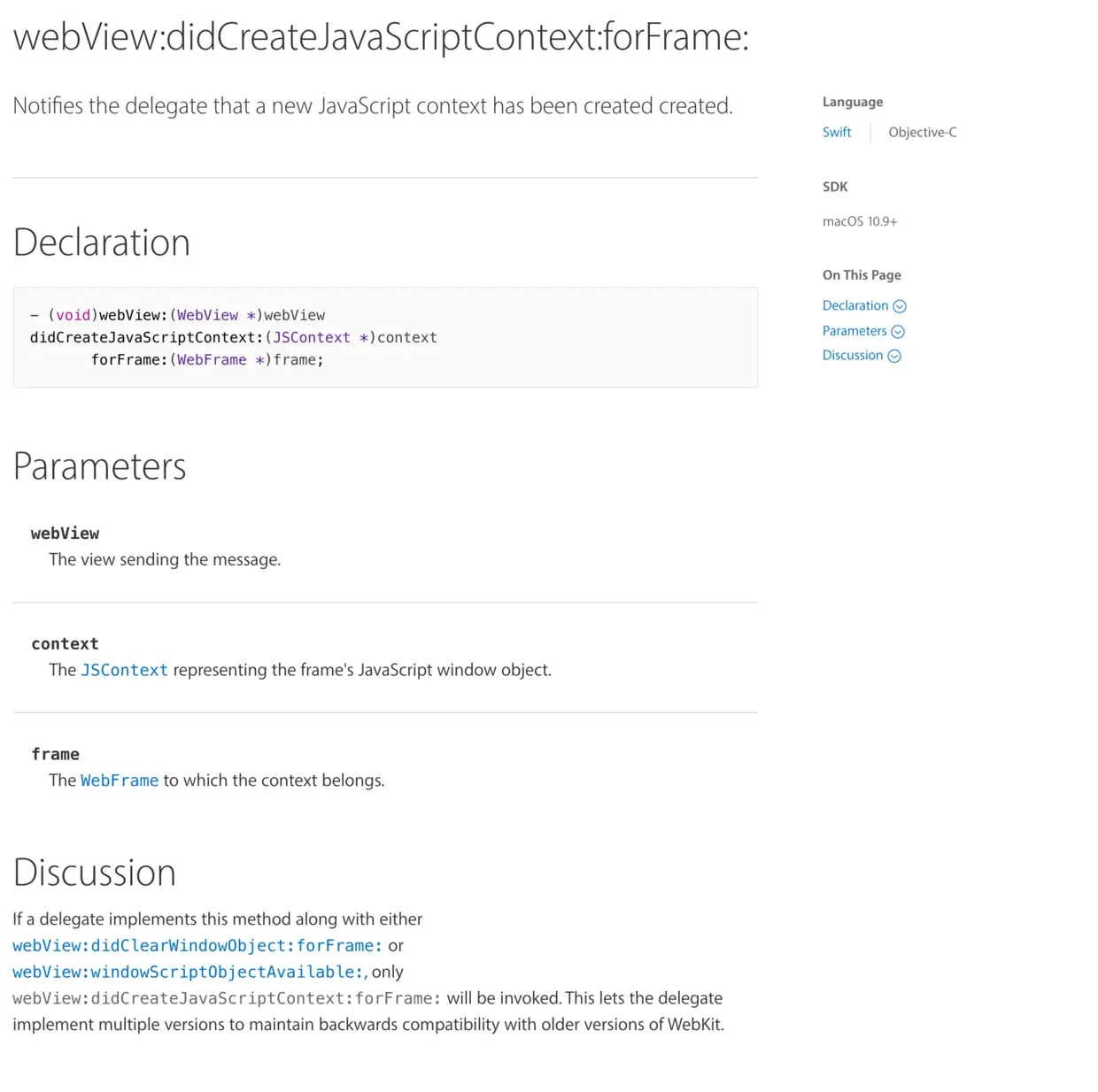 具体参见官方文档说明 didCreateJavaScriptContext