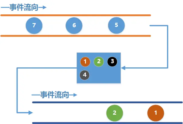 上一节中我们说到Zip可以将多个上游发送的事件组合起来发送给下游, 那大家有没有想过一个问题, 如果其中一个水管A发送事件特别快, 而另一个水管B 发送事件特别慢, 那就可能出现这种情况, 发得快的水管A 已经发送了1000个事件了, 而发的慢的水管B 才发一个出来, 组合了一个之后水管A 还剩999个事件, 这些事件需要继续等待水管B 发送事件出来组合, 那么这么多的事件是放在哪里的呢? 总有一个地方保存吧? 没错, Zip给我们的每一根水管都弄了一个水缸 , 用来保存这些事件, 用通俗易懂的图片来表示就是: