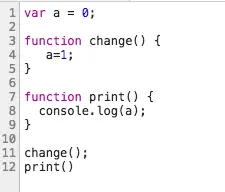 print函数会等change函数完成之后去执行,所以结构输出为1,因为change函数修改了全局变量a的值,change执行之后才执行的print函数