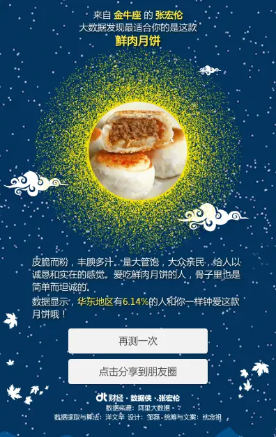 去年中秋节我瞎折腾了一个看看我属于哪种月饼?今年中秋节,我和数据、设计、文案等多位小伙伴合作,隆重推出月饼2.0版本~