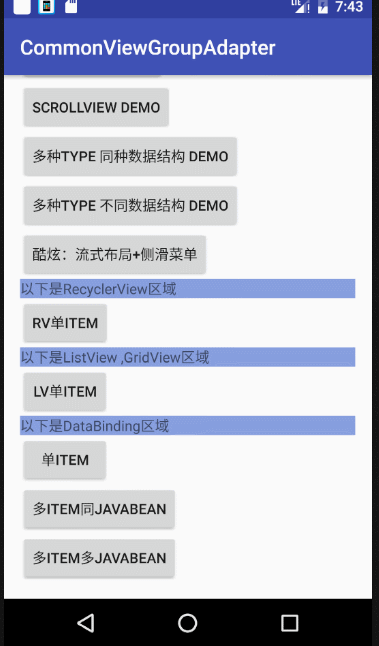 mAdapter = new BaseMulTypeBindingAdapter(this, mDatas);复杂列表依然一句话。