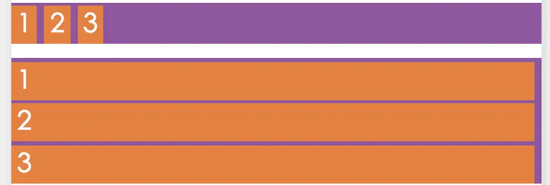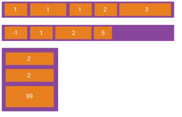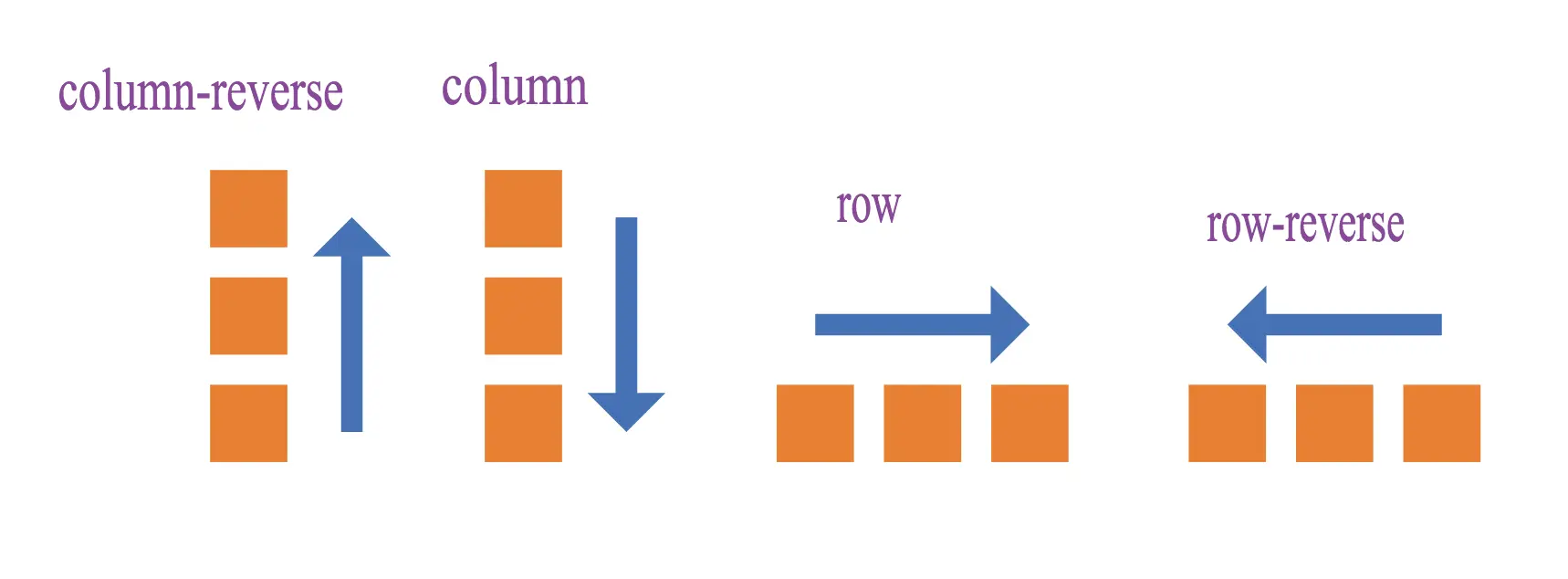 图中的实例展示了使用了不同的flex-direction值排列方向的区别。