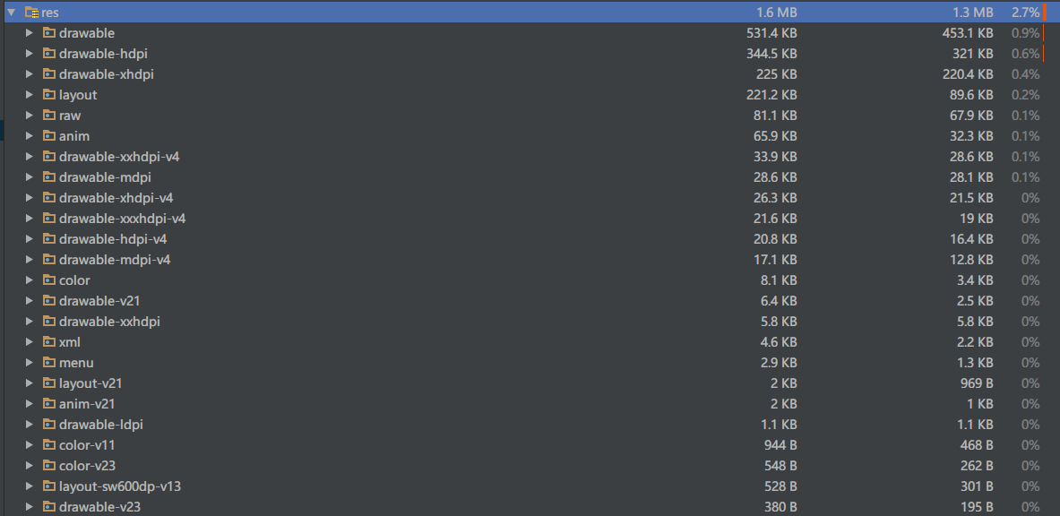 现在,我们已经知道了apk中各个文件的大小和它们占的比例,下面就可以开始针对性的进行优化了。