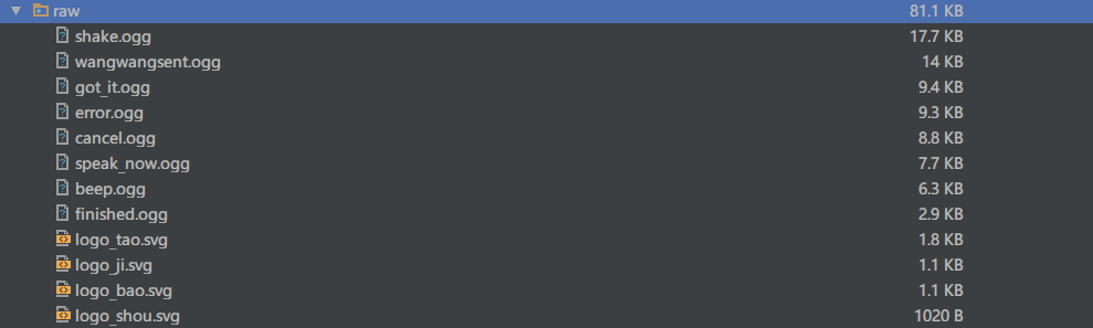 res目录存放的是资源文件,包括图片、字符串。raw文件夹下面是音频文件,各种xml文件等等。因为微信做了资源混淆,图片名字都不可读了。