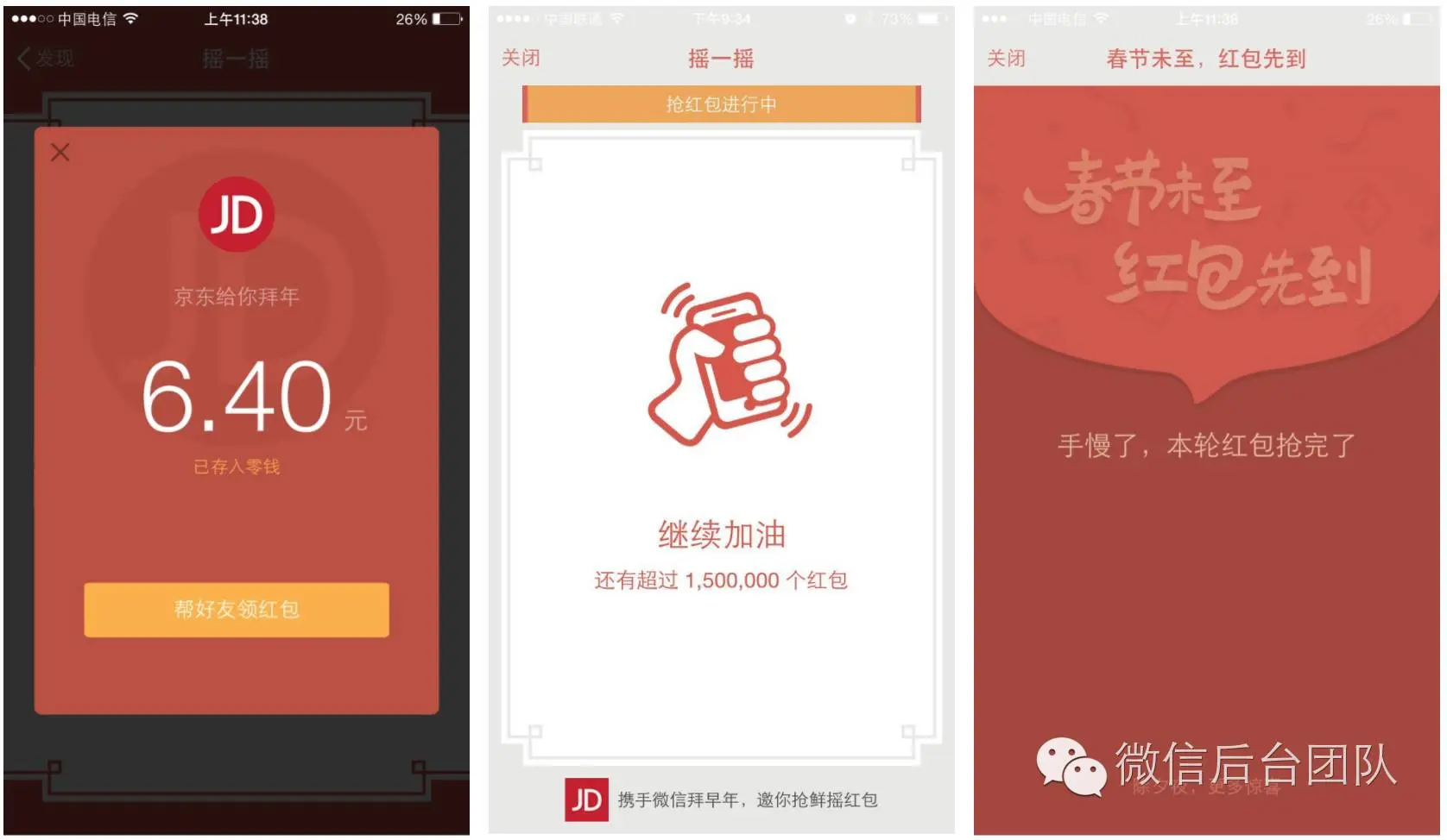 先看一下摇一摇的核心体验——摇红包,摇红包涉及摇到红包、拆红包、分享红包、好友抢红包等等步骤。