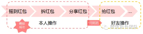 可以把拆红包和分享红包抽象一下,它们都是由两个部分组成:用户操作(信息流)和后台的红包处理逻辑(业务流)。对用户来说,他关心的是操作是否成功,而不是后台的红包处理逻辑。因此这个问题可以进一步简化为:如何确保拆红包和分享红包的用户操作能成功?