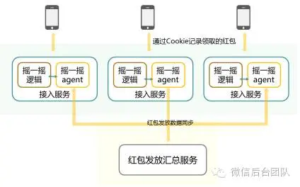 摇一摇agent会根据预设的策略给内置的摇一摇逻辑提供可下发的种子红包。红包是每秒匀速下发的,可以精确控制全局红包下发速度,保持在红包/支付系统能正常处理的范围之内。