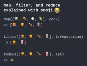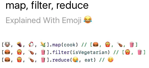 我决定听从 Jaden Geller 在 Twitter 上的所提出的建议,我没有使用便便💩来表示 reduce 操作,因为这原先会让人理解为:在每个 reduce 操作执行的时候,都是将便便和一个新的食物合起来一同「吃下」。在 Swift 的版本当中,reduce 将从一个悲伤的表情😪开始,最后变得高兴和满足😋。