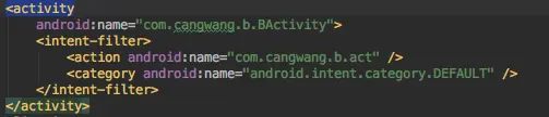 (1)声明一个Activity,通过intent-filter来限定隐式启动的action。