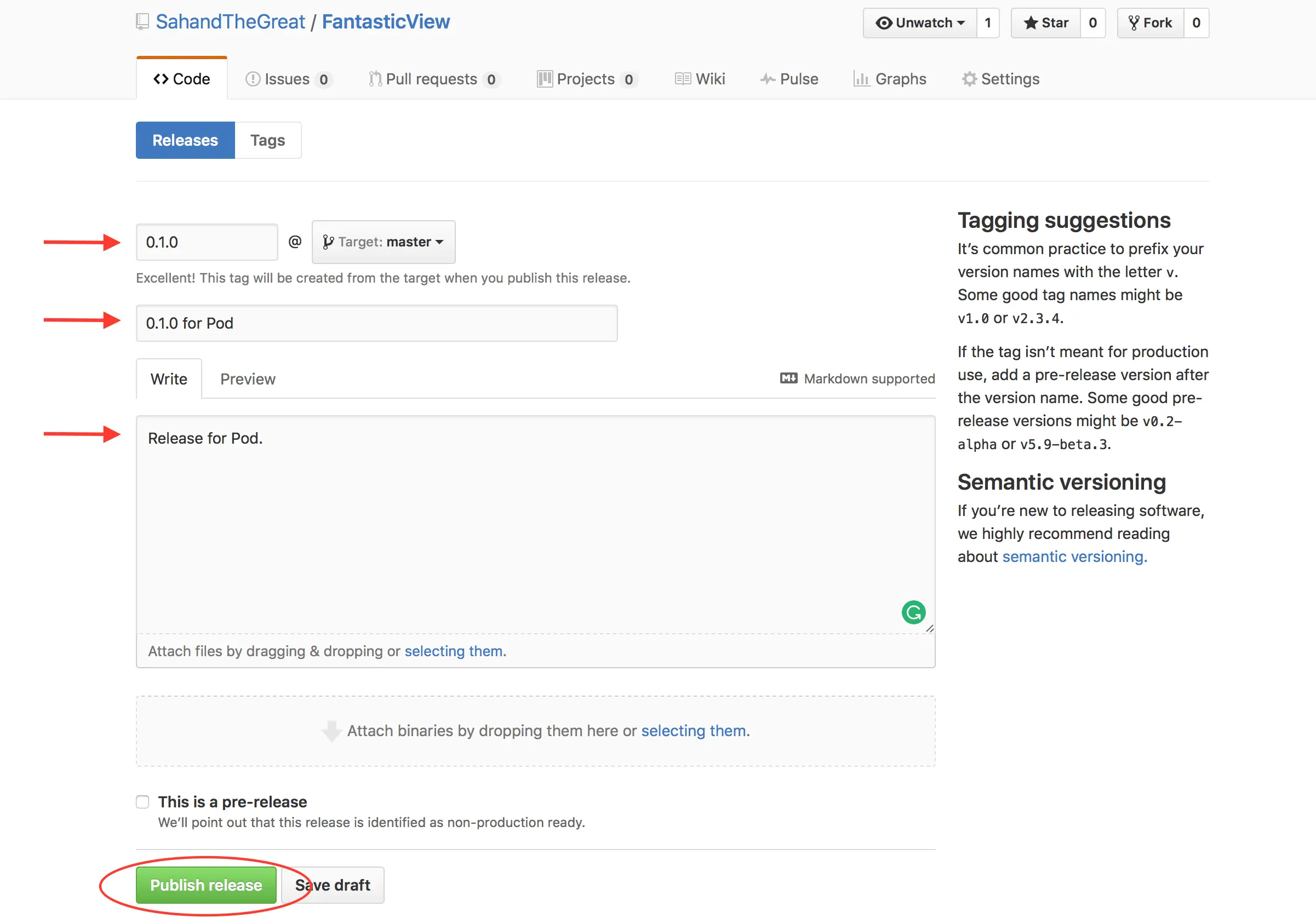 噢,是时候将你的 Fantastic View 发布到 CocoaPods 了。每个开发者都应该拥有一个 CocoaPods 账户,以备发布之时用。