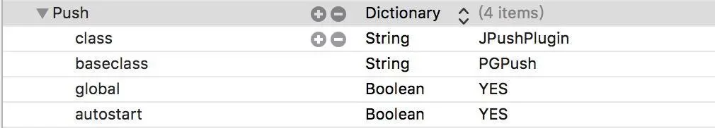 - class 的值需要跟 native 代码中的类名一致,此处为 JPushPlugin