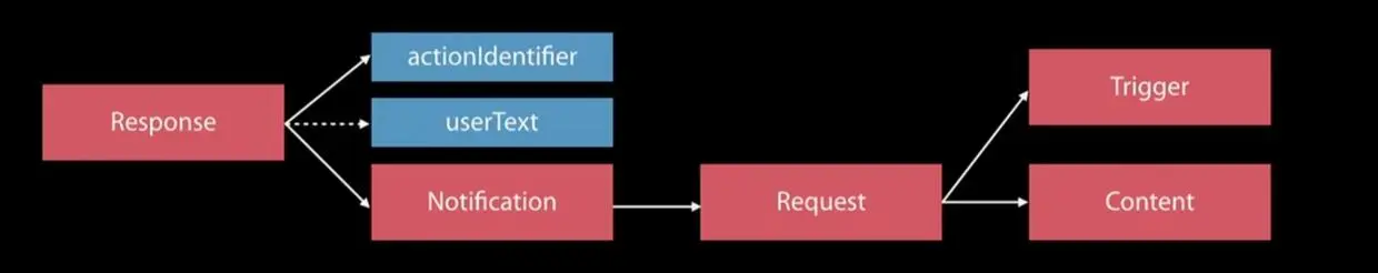 用户点击这些 actions 以后,是启动 App、触发键盘、清除通知或是有其他的响应,这些全部只需要实现协议 UNUserNotificationCenterDelegate 中的一个方法就可以控制: