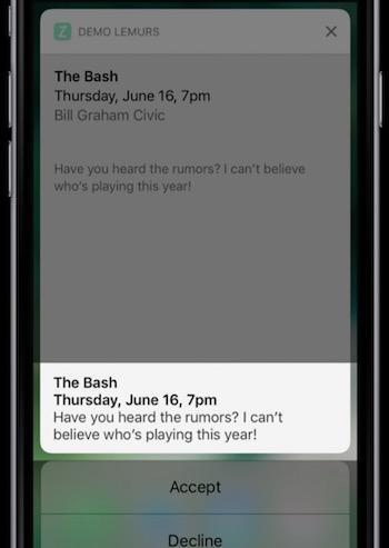 - Dismiss Actions:锁屏推送侧滑操作 | 通知中心推送侧滑操作 | 非 3d-touch 横幅下拉操作