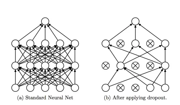 Drop out同样可以避免过拟合,并且能以近似指数的时间来合并多个不同的神经网络结构。该方法会随机地在每一层中选择一些显性层与隐层,在我们的实践中通常会由固定比例的层Drop out决定。
