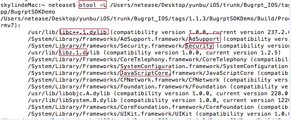 (1) otool可查看可执行程序都链接了哪些库。