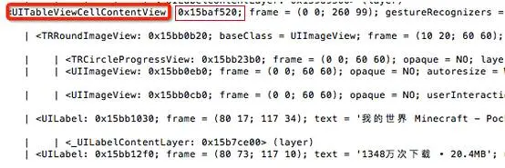 使用[#0x15baf520 nextResponder]往上找,可以得到:TRTableMultipleViewCell。