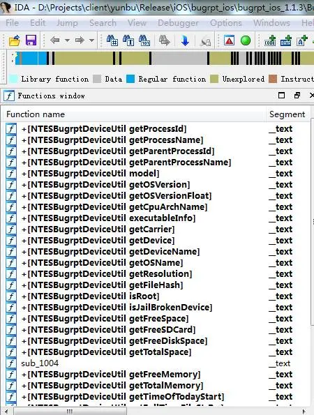 上图显示,从IDA工具就可以看到该APP使用的一些类名和方法名,进而就可以分析到方法里面的实现逻辑了。