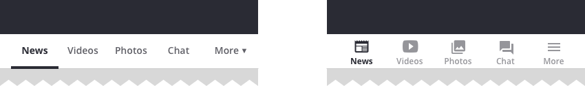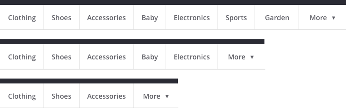 针对上述【包含“更多”选项的选项卡】方案,一个更精致的做法是使菜单选项适应屏幕宽度来显示,尽可能显示更多的选项,多余的部分则放到一个“更多”选项下。