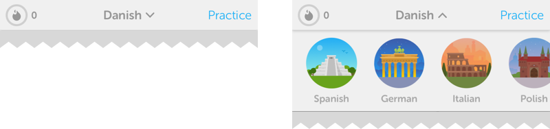 虽然对于大多数用户来说不是一个常见的交互,Duolingo允许用户下拉快速切换语言