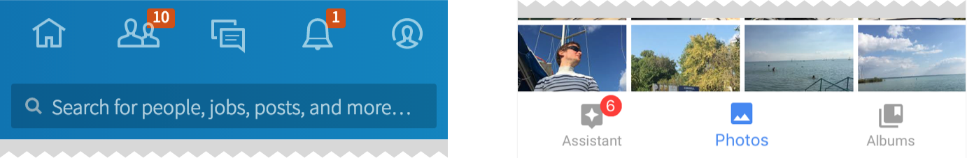 LinkedIn中仅使用图标,Google Photos则使用图标和标签