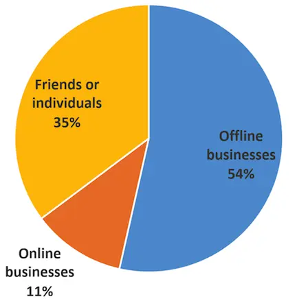 日志式研究中,在用户记录的使用内容中,单单支付就占到了32%,这无疑确立了其在微信所有服务中的核心地位。在这7天里,平均下来,每个参与者各自贡献了6次支付行为——几乎每天一次。其中,大多数的支付都发生在线下交易场景中,真正在电商平台购买的都是少数。