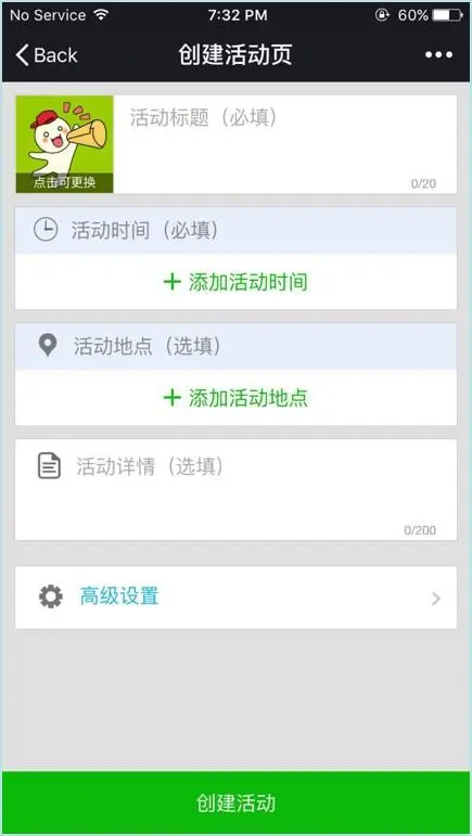 Team Maker 的公众号:虽然顶部输入域有“活动标题(必填)”的提示,但大部分测试用户还是会忽略掉它