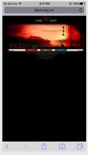通过手机浏览器打开故宫博物院的官方网站,可以看到其并未针对移动端的访问做优化