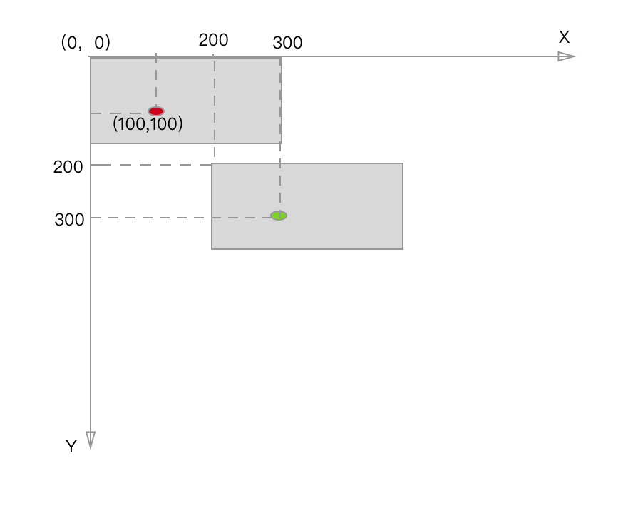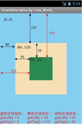 如上图所以,绿色区域的父视图是黄色区域,所以left是55,top是55。