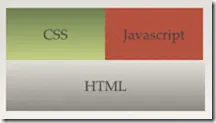 一个正常的Web页面通常有以下三部分组成,HTML,CSS,Javascript,其中HTML是数据,CSS负责样式,而Javascript负责交互,三者的关系如下图: