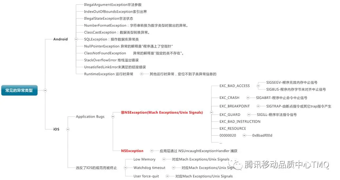 日志信息中,比较关键的信是错误类型。这里带大家了解一下目前移动端关于异常的整体分类情况。