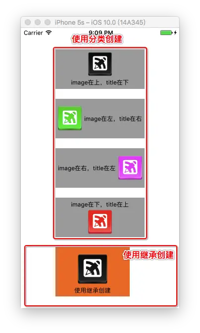- 第一种通过分类的方式设置按钮非常方便,只需要一行代码就足够了,不需要我们自己计算UIEngeInsetsMake,适用于纯代码创建的按钮。 如果是Xib创建的按钮就用不了了。