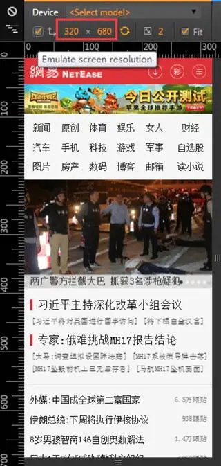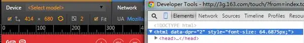 根据这个可以肯定它的设计稿竖着时的横向分辨率为640。然后你再看看网易在分辨率为320*680,375*680,414*680,500*680时,html的font-size是不是与上面计算的一致: