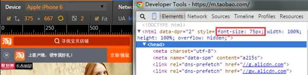 淘宝布局的第二个要点,就是html元素的font-size的计算公式,font-size = deviceWidth / 10: