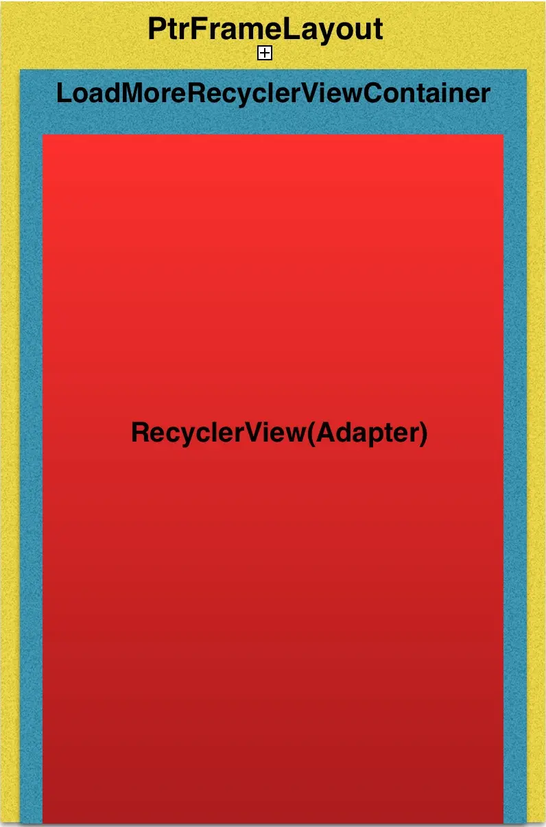 最外层ViewGroup,只负责下拉刷新,首先接触到触摸事件,符合下拉逻辑,则显示头布局,否则向下分发事件 - LoadMoreRecyclerViewContainer