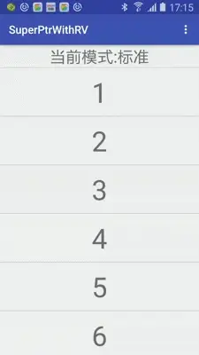gif中我展示了上拉加载,下拉刷新,标准,全部功能,空View五种情况。这里只是为了展示,其实我们在使用过程中,基本不会用到各种情况之间的互相切换。项目中目前只定义了两种样式的头部,第一种就是类似gif中MaterialDesign的样式,第二种就是传统样式类似PullToRefreshListView中的,这里没有展示。
