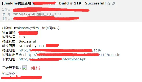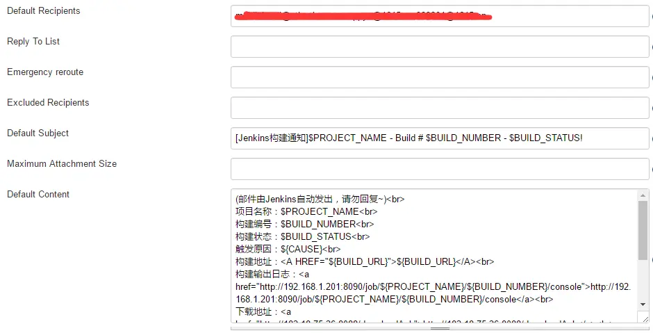 构建输出日志:<a href="http://192.168.1.201:8090/job/${PROJECT_NAME}/${BUILD_NUMBER}/console">http://192.168.1.201:8090/job/${PROJECT_NAME}/${BUILD_NUMBER}/console</a><br>