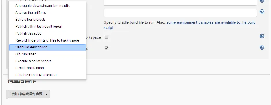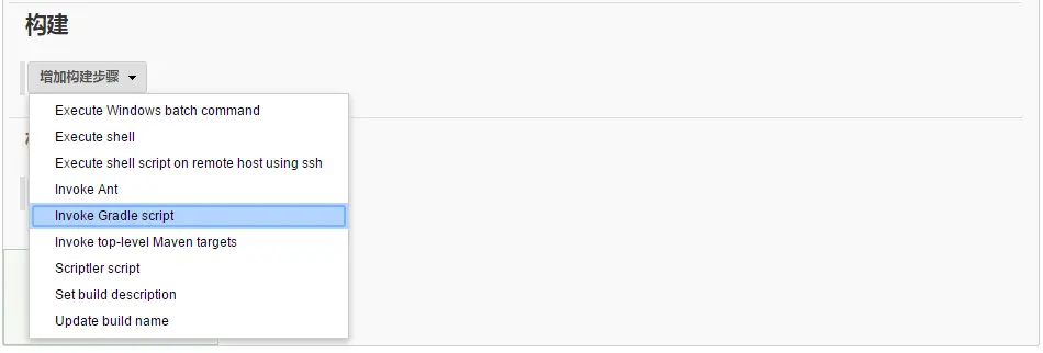 接着滚动到构建Tab,点击添加构建步骤,然后选择Invoke Gradle script,如图: