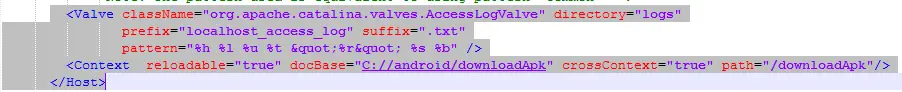 <Context reloadable="true" docBase="C://android/downloadApk" crossContext="true" path="/downloadApk"/>