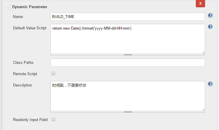 | BUILD_TIME | Dynamic Parameter | 2016-12-21-11-11 |