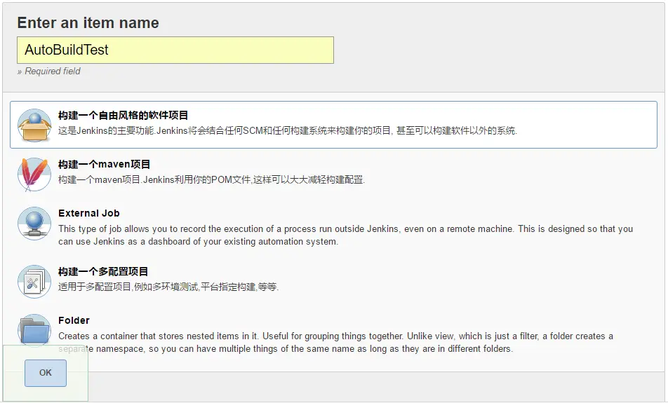 给自己的项目起个名字,然后选择构建一个自由风格的软件项目,点击OK按钮,进入项目的配置界面。