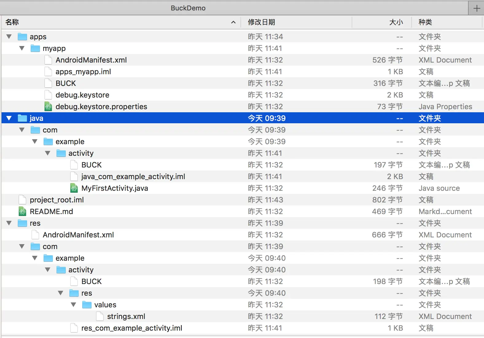可以看到,每个目录下面都有一个BUCK配置文件,我们先预览下myapp下面的BUCK文件内容